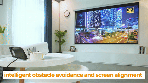 The projector’s auto focus and auto keystone correction functions ensure a consistently sharp, rectangular image without manual adjustments. Intelligent obstacle avoidance and screen alignment adapt the display to avoid obstacles and perfectly fit your screen. Enjoy smooth and lag-free streaming with dual 2.4G/5G WiFi and WiFi 6 technology, providing fast and stable connections for all your content.