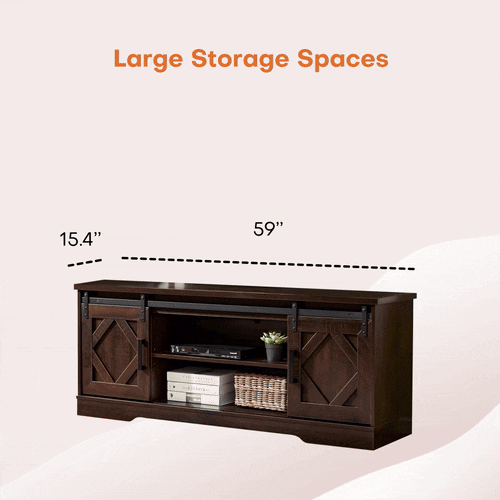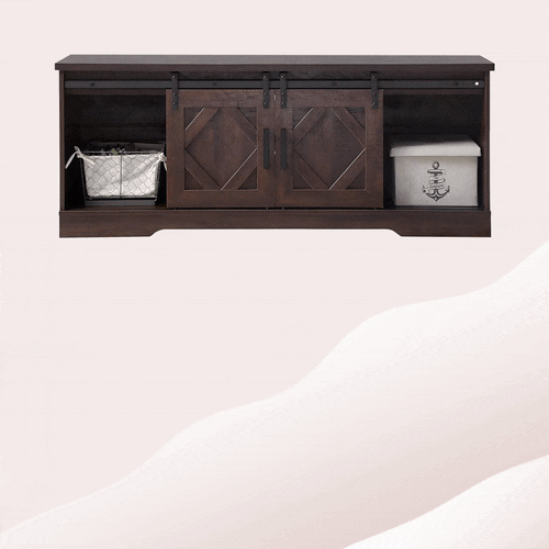 • Farmhouse Barn-Door Design: The sliding barn doors not only add a rustic touch but also provide easy access to your media essentials.
