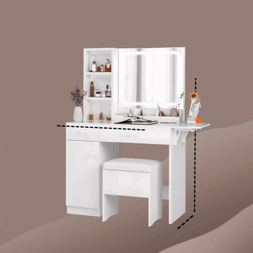 • Multifunctional storage spaces keep all beauty essentials organized and accessible.