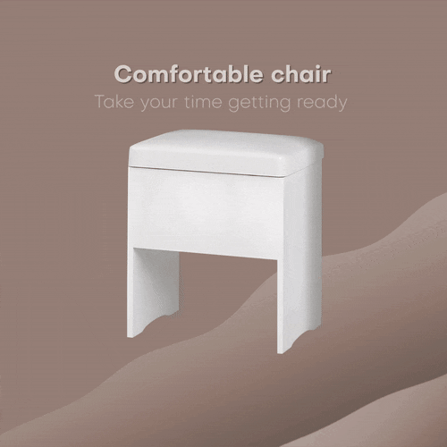 Not only does our vanity desk feature a stylish and functional design, but it also includes thoughtful details like a power outlet and adjustable light settings that set it apart from others. It’s built to accommodate all your beautifying needs with unmatched elegance and efficiency.