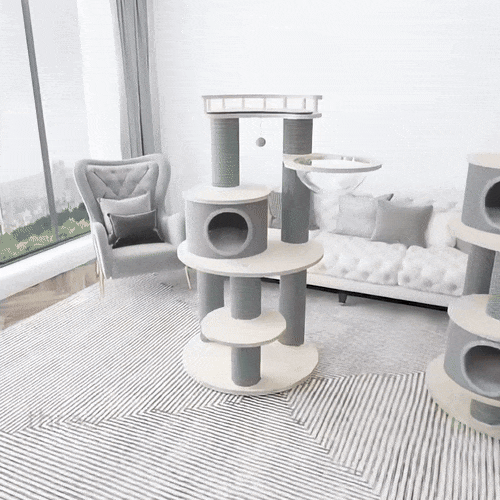 What sets our Luxury Wooden Cat Tower apart is its combination of functionality, durability, and elegant design. The use of high-quality wood not only ensures its longevity but also adds a touch of sophistication to your home. It’s not just a cat tree; it’s a piece of furniture that both you and your pet will love.