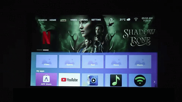 • Android System: Access a wide range of apps and streaming services directly from the projector.
