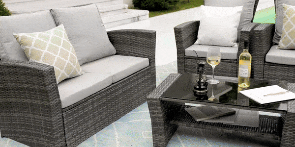 Our Modern 4-Piece Wicker Conversation Set is perfect for any outdoor setting. Whether you have a porch, deck, garden, balcony, or poolside, this set enhances the ambiance of your outdoor space. It’s ideal for casual gatherings, cozy evenings with family, or simply unwinding in the fresh air.