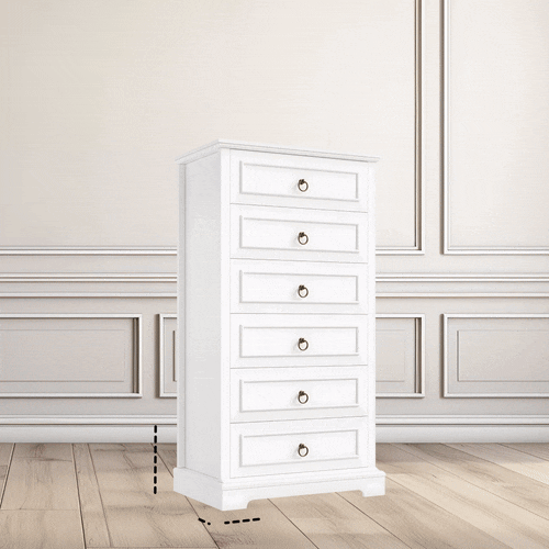 Introducing the perfect blend of style and functionality – our Modern Farmhouse 6-Drawer Tall Dresser. Designed to enhance the aesthetic of any room while offering substantial storage solutions, this dresser meets all your organizational needs without compromising on style.