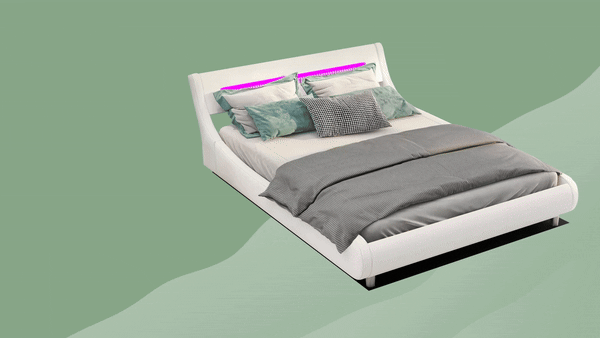 Switching up colors according to my mood or decor using the customizable lighting feature on this upholstered platform bed makes me feel like I have new furniture every day!