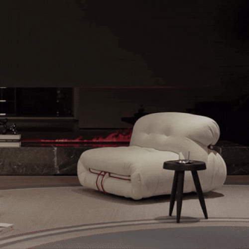 The unique curvilinear shape of this sofa chair, inspired by the human form, ensures the utmost comfort. Its body, wrapped in plush upholstery and supported by a sturdy metal brace, is both stylish and durable. The seat and backrest cushions are adorned with a quilted effect, featuring upholstered buttons that add to its charm. The use of high-quality materials like Chenille knitted fabric and metal guarantees longevity and enduring appeal.