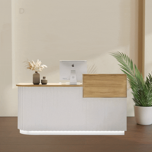 This reception desk is ideal for businesses aiming to create a welcoming yet professional ambiance. It’s perfect for high-traffic areas, offering both functionality and a visually pleasing aesthetic. Whether you’re refurbishing your office or setting up a new shop, this desk will meet and exceed your expectations.