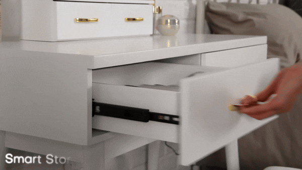 No more cluttered countertops! This vanity is equipped with two small drawers perfect for storing jewelry and makeup essentials, and a large drawer for bigger items like cosmetics bags and skin care products. The thoughtful design makes it easy to keep your space tidy and organized.
