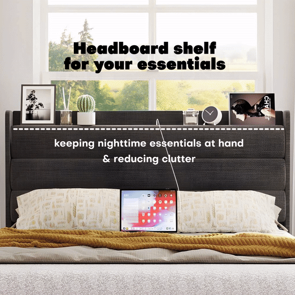 Who knew a bed frame could offer so much? The built-in power outlets and USB ports incredibly handy, keeping my devices charged and within reach. Plus, the headboard shelf is perfect for storing my nighttime essentials - no more searching in the dark!