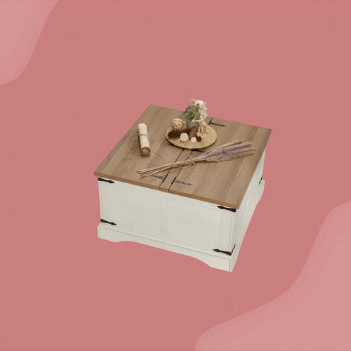 This table is like the Swiss Army Knife of furniture - a true multifunctional marvel! It's got so much going for it, I'm even sure where to start. So first off, you've got this top that lifts right up. And if that wasn’t enough goodness packed into one piece of furniture already, wait till I spill about its storage capabilities – they’re outta sight. Literally though because all that stuff you'd usually have cluttering up your living room? Well now there’s a place for everything with plenty of room left over! Tucked away neatly inside is ample space for stashing books, remotes (that always seem to go missing), snacks for those Netflix binge sessions or anything else you can think of really. The best part? Once the lid goes back down no one would ever suspect what treasures lie within. But hey don’t just take my word for it; get yourself one and see how it transforms not only your living area but also how convenient life gets around here. Oh yeah...and did I mention it's super stylish too? Really ties any room together if you ask me 🙌 Talk about getting bang for your buck!