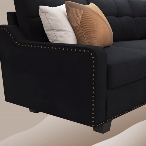 Perfect for everyday use, our sectional sofa supports a weight capacity of up to 1488 lbs, ensuring it can handle enthusiastic gatherings and cozy family movie nights alike. Its pet-friendly material makes it ideal for pet owners, while the chic black velvet offers versatility to match any decor. Whether you’re furnishing a new apartment or revamping your living space, our sofa brings both functionality and mid-century charm.